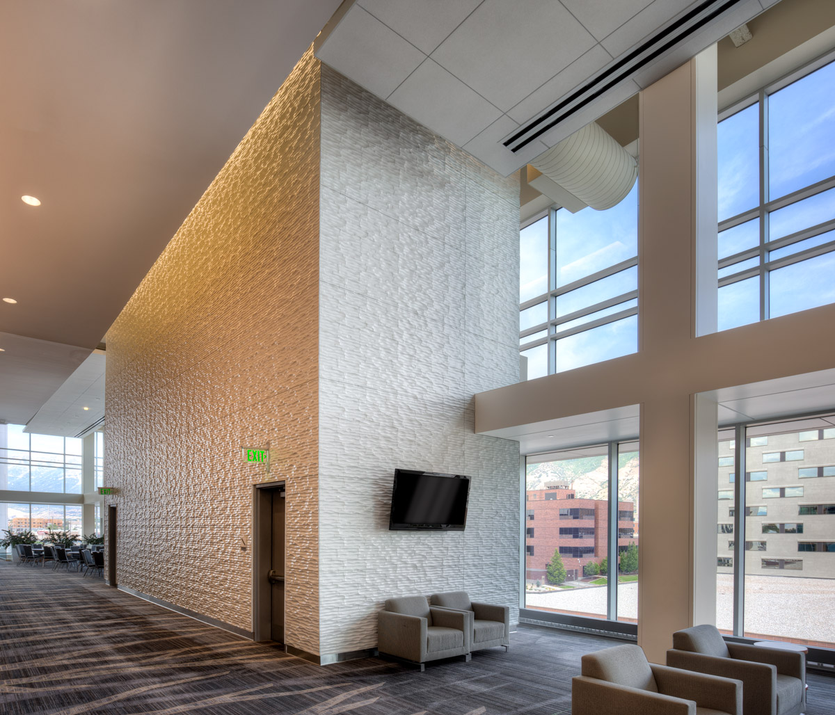 Located in the heart of historic downtown Provo, the Utah Valley Convention Center is a vibrant, design-forward destination offering 83,578 square feet of flexible, multifunctional event space. Flooded with natural light and framed by stunning Wasatch Mountain views, the center delivers an atmosphere that is both inspiring and unforgettable. Throughout the facility, walls clad in SOELBERG Scalpello texture wall panels add depth, craftsmanship, and a refined architectural statement that elevates every event experience.